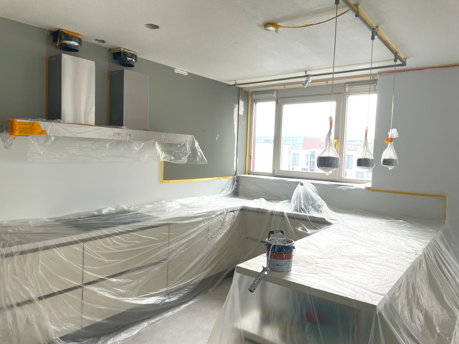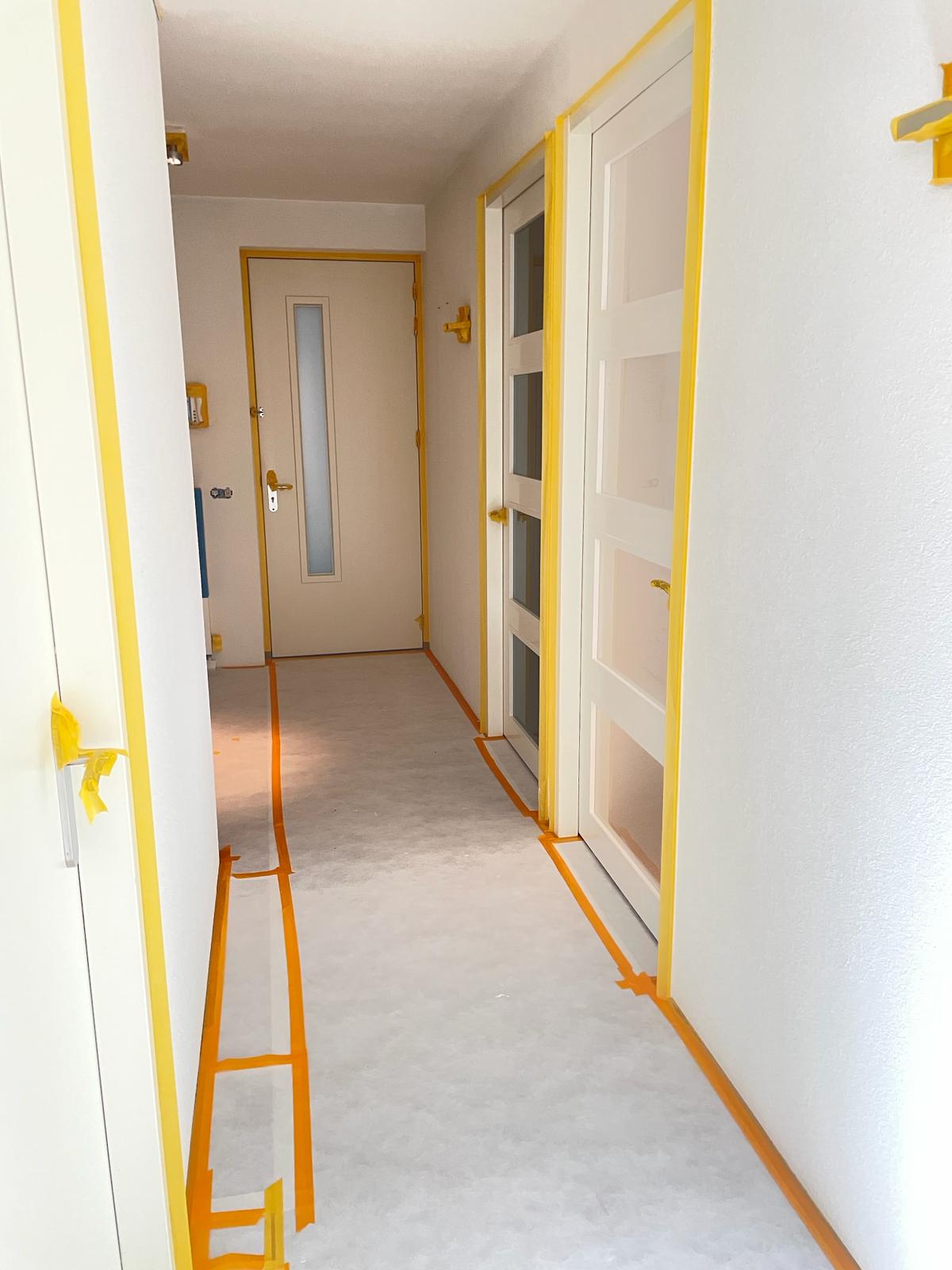 Voor de schilder is het meeste werk eigenlijk altijd het afplakken en afdekken van de vloer en eventueel overgebleven spullen. Wij zijn daar heel perfectionistisch in.